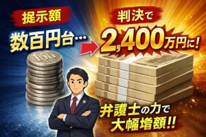 最終的には判決となり、当初の任意保険会社の提示額から約2400万円の増額が認められました。